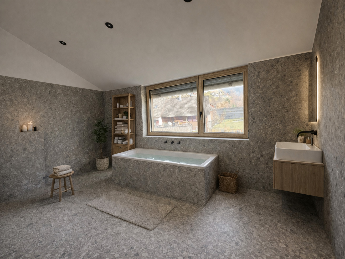 The house in Mellau has 5 bedrooms and has capacity for 10 people. The house is 160 m². The accommodation is equipped with the following items: garden, garden furniture, 30 m² terrace, washing machine, dryer, barbecue, internet (Wi-Fi), hair dryer, childrens area, gym / fitness centre, central heating, covered parking the same building, 3 TVs, satellite tv (Languages: English, German, French). In the induction open plan kitchen, refrigerator, microwave, oven, freezer, dishwasher, dishes/cutlery, kitchen utensils, coffee machine, toaster and kettle are provided.